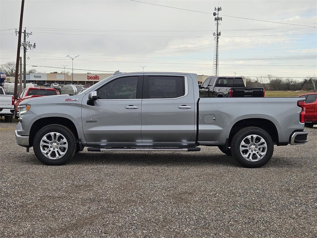 High Capacity Suspension Package, LTZ Convenience Package (2 USB Data Ports, Floor Mounted Center Console, Power Tilt & Telescoping Steering Column, Premium Bose 7-Speaker Sound System, Ventilated Driver & Front Passenger Seats, and Wireless Charging), LTZ Plus Package, Safety Package (HD Surround Vision, Perimeter Lighting, Rear Cross Traffic Braking, Rear Pedestrian Alert, Safety Alert Seat, Trailer Camera Provisions, Trailer Side Blind Zone Alert, and Ultrasonic Front & Rear Park Assist), Trailering Package (Hitch Guidance), Up-Level Rear Seat w/Storage Package, Silverado 1500 LTZ, 4D Crew Cab, 3.0L I6, 10-Speed Automatic, 4WD, Sterling, Jet Blk Perforated Lth-Ap Leather, 10-Way Power Driver Seat w/Lumbar, 10-Way Power Passenger Seat Adjuster w/Lumbar, 12.3 Multicolor Reconfigurable Digital Display, 120-Volt Bed Mounted Power Outlet, 120-Volt Interior Power Outlet, 170 Amp Alternator, 3.23 Rear Axle Ratio, 4-Wheel Disc Brakes, 7 Speakers, ABS brakes, Air Conditioning, Alloy wheels, AM/FM radio: SiriusXM with 360L, Apple CarPlay/Android Auto, Auto High-beam Headlights, Auto-dimming door mirrors, Auto-Dimming Inside Rear-View Mirror, Auto-dimming Rear-View mirror, Auto-Locking Rear Differential, Automatic Emergency Braking, Automatic temperature control, Bluetooth® For Phone, Brake assist, Bumpers: chrome, Chrome Mirror Caps, Color-Keyed Carpeting Floor Covering, Compass, Deep-Tinted Glass, Delay-off headlights, Driver door bin, Driver Memory, Driver vanity mirror, Dual front impact airbags, Dual front side impact airbags, Dual Rear USB Ports (Charge Only), Electric Rear-Window Defogger, Electronic Cruise Control, Electronic Stability Control, Electronic Transmission Range Selector Shifter, Emergency communication system: OnStar, Following Distance Indicator, Forward Collision Alert, Front anti-roll bar, Front Bucket Seats, Front Center Armrest, Front dual zone A/C, Front fog lights, Front Frame-Mounted Black Recovery Hooks, Front LED Fog Lamps, Front Pedestrian Braking, Front Rain-Sensing Wipers, Front reading lights, Front Rubberized Vinyl Floor Mats, Front wheel independent suspension, Fully automatic headlights, Heated door mirrors, Heated Driver & Front Outboard Passenger Seats, Heated front seats, Heated Steering Wheel, Heated steering wheel, Hitch Guidance w/Hitch View, Illuminated entry, In-Vehicle Trailering System App, Integrated Trailer Brake Controller, IntelliBeam Automatic High Beam On/Off, Keyless Open & Start, Lane Keep Assist w/Lane Departure Warning, LED Cargo Area Lighting, Low tire pressure warning, Memory seat, Occupant sensing airbag, OnStar Services Capable, Outside Heated Power-Adjustable Mirrors, Outside temperature display, Overhead airbag, Overhead console, Panic alarm, Passenger door bin, Passenger vanity mirror, Perforated Leather-Appointed Front Seat Trim, Power door mirrors, Power driver seat, Power Front Passenger Windows w/Express Up/Down, Power Front Windows w/Driver Express Up/Down, Power passenger seat, Power Rear Windows w/Express Down, Power steering, Power Tailgate, Power windows, Premium audio system: Chevrolet Infotainment 3 Premium, Radio data system, Radio: Chevrolet Infotainment 3 Premium System, Rain sensing wipers, Rear reading lights, Rear Rubberized-Vinyl Floor Mats, Rear seat center armrest, Rear step bumper, Rear Wheelhouse Liners, Rear window defroster, Remote keyless entry, Remote Vehicle Starter System, Security system, SiriusXM w/360L Trial Subscription, Speed control, Speed-sensing steering, Split folding rear seat, Standard Tailgate, Steering Wheel Audio Controls, Steering wheel mounted audio controls, Tachometer, Teen Driver, Telescoping steering wheel, Theft Deterrent System (Unauthorized Entry), Tilt steering wheel, Tire Pressure Monitoring System, Traction control, Trip computer, Variably intermittent wipers, Ventilated front seats, V Price includes: $1750 - GM Bonus Cash. Exp. 02/02/2026 $2500