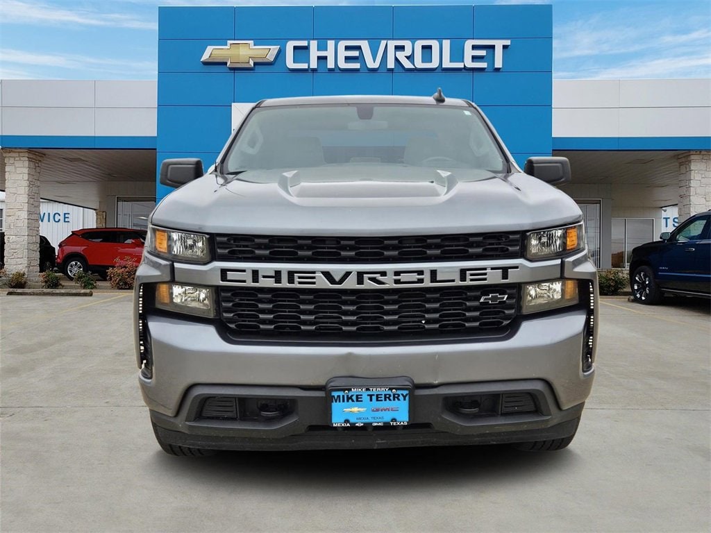 Silverado 1500 Custom, 4D Crew Cab, 2.7L Turbo, 8-Speed Automatic, 4WD, Satin Steel Metallic, Black Cloth. Odometer is 7885 miles below market average!Satin Steel Metallic 2021 Chevrolet Silverado 1500 Custom 2.7L Turbo 8-Speed Automatic 4WDCustom Convenience Package (Electric Rear-Window Defogger, EZ Lift Power Lock & Release Tailgate, LED Cargo Area Lighting, Remote Vehicle Starter System, and Theft Deterrent System (Unauthorized Entry)), Custom Value Package, Dark Essentials Package (LPO) (Black Name Plates (LPO)), Infotainment Package (4G LTE Wi-Fi Hot Spot Capable, Chevrolet Connected Access Capable, OnStar & Chevrolet Connected Services Capable, and SiriusXM Radio), Preferred Equipment Group 1CX (170 Amp Alternator, 3.5 Diagonal Monochromatic Display, Bluetooth® For Phone, Body Color Grille, Color-Keyed Carpeting Floor Covering, Compass, Deep-Tinted Glass, Electronic Cruise Control, Front Frame-Mounted Black Recovery Hooks, Front Rubberized Vinyl Floor Mats, Manual Tilt Wheel Steering Column, Power Door Locks, Power Front Windows w/Driver Express Up/Down, Power Front Windows w/Passenger Express Down, Power Rear Windows w/Express Down, Rear 60/40 Folding Bench Seat (Folds Up), Rear Rubberized-Vinyl Floor Mats, Remote Keyless Entry, and Standard Tailgate), Trailering Package (Hitch Guidance), Silverado 1500 Custom, 4D Crew Cab, 2.7L Turbo, 8-Speed Automatic, 4WD, Satin Steel Metallic, Black Cloth, 120-Volt Bed Mounted Power Outlet, 120-Volt Instrument Panel Power Outlet, 220 Amp Alternator, 3.42 Rear Axle Ratio, 4-Wheel Disc Brakes, 40/20/40 Front Split Bench Seat, 6 Speakers, ABS brakes, Air Conditioning, Alloy wheels, AM/FM radio: SiriusXM, Apple CarPlay/Android Auto, Auto-Locking Rear Differential, Automatic Stop/Start, Black Tailgate CHEVROLET Lettering (LPO), Brake assist, Bumpers: body-color, Chevytec Spray-On Black Bedliner, Cloth Seat Trim, Delay-off headlights, Driver door bin, Driver vanity mirror, Dual front impact airbags, Dual front side impact airbags, Electronic Stability Control, Front anti-roll bar, Front Black Bowtie Emblem (LPO), Front Center Armrest w/Storage, Front License Plate Kit, Front reading lights, Front wheel independent suspension, Fully automatic headlights, Heated door mirrors, Heavy Duty Suspension, Illuminated entry, Integrated Trailer Brake Controller, Low tire pressure warning, Occupant sensing airbag, Outside temperature display, Overhead airbag, Overhead console, Panic alarm, Passenger door bin, Passenger vanity mirror, Polished Exhaust Tip, Power door mirrors, Power steering, Power windows, Premium audio system: Chevrolet Infotainment 3, Radio data system, Radio: Chevrolet Infotainment 3 System, Rear reading lights, Rear step bumper, Rear window defroster, Remote keyless entry, Security system, Single-Zone Manual/Semi-Automatic Air Conditioning, Speed control, Speed-sensing steering, Split folding rear seat, Tachometer, Tilt steering wheel, Traction control, Trip computer, Variably intermittent wipers, Voltmeter, and Wheels: 20 x 9 Bright Silver Painted Aluminum.
