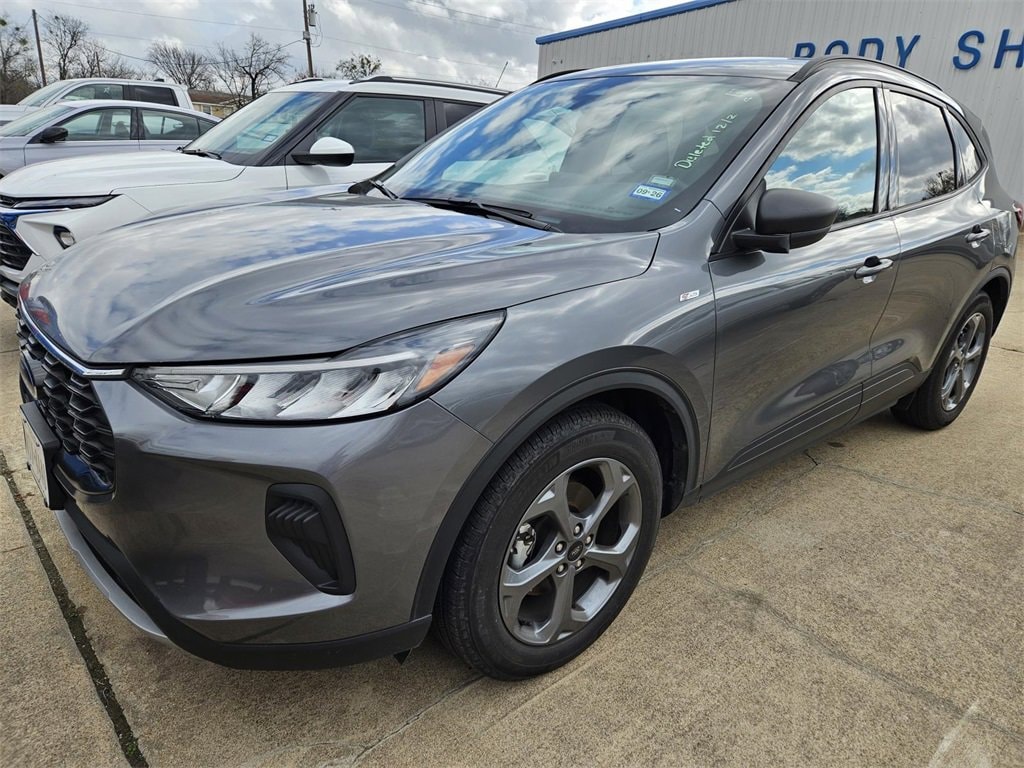 Recent Arrival! Escape ST-Line, 4D Sport Utility, 1.5L EcoBoost, 8-Speed Automatic, FWD, Gray Metallic.Gray Metallic 2025 Ford Escape ST-Line 1.5L EcoBoost 8-Speed Automatic FWDEscape ST-Line, 4D Sport Utility, 1.5L EcoBoost, 8-Speed Automatic, FWD, Gray Metallic, 3.81 Axle Ratio, 4-Wheel Disc Brakes, 6 Speakers, ABS brakes, Air Conditioning, Alloy wheels, AM/FM radio: SiriusXM, AM/FM Stereo, Auto High-beam Headlights, Automatic temperature control, Brake assist, Bumpers: body-color, Compass, Delay-off headlights, Driver door bin, Driver vanity mirror, Dual front impact airbags, Dual front side impact airbags, Electronic Stability Control, Emergency communication system: SYNC 4 911 Assist, FordPass Connect, Four wheel independent suspension, Front anti-roll bar, Front Bucket Seats, Front Center Armrest, Front dual zone A/C, Front reading lights, Fully automatic headlights, Illuminated entry, Internet access capable: FordPass Connect 4G, Knee airbag, Low tire pressure warning, Occupant sensing airbag, Outside temperature display, Overhead airbag, Overhead console, Panic alarm, Passenger door bin, Passenger vanity mirror, Power door mirrors, Power driver seat, Power steering, Power windows, Radio data system, Rear anti-roll bar, Rear reading lights, Rear seat center armrest, Rear window defroster, Rear window wiper, Remote keyless entry, Speed control, Speed-sensing steering, Speed-Sensitive Wipers, Split folding rear seat, Spoiler, Sport steering wheel, Steering wheel mounted audio controls, SYNC 4, Tachometer, Telescoping steering wheel, Tilt steering wheel, Traction control, Trip computer, Variably intermittent wipers, Vinyl/Cloth Front Sport Contour Bucket Seats, and Wheels: 18 Rock Metallic Painted Aluminum.