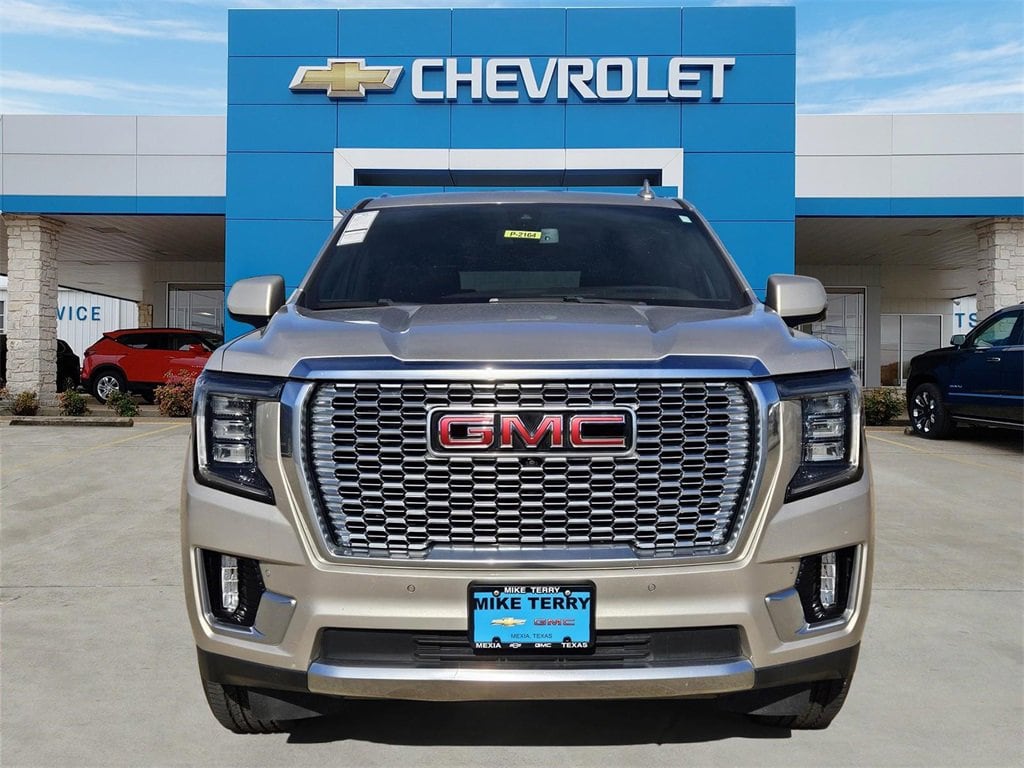 License Plate Front Mounting Package, Max Trailering Package, Preferred Equipment Group 5SA (15 Diagonal Multi-Color Head-Up Display, 2 Presets For Outside Rearview Mirrors, 3 Years of GMC Connected Services, 3rd Row 60/40 Power-Folding Split-Bench Seat, Automatic Stop/Start, Bright Front & Rear Door Sill Plates, Chrome Door Handles w/Body-Color Strip, Dual Exhaust System, Floor Console, Galvano Bodyside Moldings, Hands-Free Power Programmable Rear Liftgate, HD Surround Vision, Heated & Ventilated Driver & Front Passenger Seats, Heated 2nd Row Outboard Position Seats, Heated Driver & Front Passenger Seats, Heated Steering Wheel, Hill Descent Control, Inside Rear-View Auto-Dimming Mirror, Outside Heated Power-Adjustable Mirrors, Power Release 2nd Row Bucket Seats, Power Tilt & Telescopic Steering Column, Rear Pedestrian Alert, Safety Alert Seat, Start/Stop System Disable Button, Universal Home Remote, and Wireless Charging), Yukon XL Denali, 4D Sport Utility, EcoTec3 6.2L V8, 10-Speed Automatic with Overdrive, 4WD, Pearl Beige Metallic, Jet Black Leather, 14 Speakers, 3.23 Rear Axle Ratio, 3rd row seats: split-bench, 4-Wheel Disc Brakes, ABS brakes, Adaptive suspension, Air Conditioning, Alloy wheels, AM/FM radio: SiriusXM with 360L, AM/FM Stereo, Apple CarPlay/Android Auto, Auto High-beam Headlights, Auto-dimming door mirrors, Auto-dimming Rear-View mirror, Auto-leveling suspension, Automatic Emergency Braking, Automatic temperature control, Bodyside moldings, Bose 14-Speaker Surround w/CenterPoint, Brake assist, Brownstone/Jet Black Interior Trim, Bumpers: body-color, Compass, Delay-off headlights, Driver door bin, Driver vanity mirror, Dual front impact airbags, Dual front side impact airbags, Electronic Stability Control, Emergency communication system: OnStar and GMC Connected Services capable, Extra Capacity Cooling System, Floor Console w/Storage Area, Following Distance Indicator, Forward Collision Alert, Four wheel independent suspension, Front & Rear Park Assist, Front anti-roll bar, Front Bucket Seats, Front Center Armrest, Front dual zone A/C, Front fog lights, Front Pedestrian Braking, Front reading lights, Fully automatic headlights, Garage door transmitter, Heads-Up Display, Heated door mirrors, Heated front seats, Heated rear seats, Heated steering wheel, Hitch Guidance w/Hitch View, Illuminated entry, Integrated Trailer Brake Controller, IntelliBeam Automatic High Beam On/Off, Lane Change Alert w/Side Blind Zone Alert, Lane Keep Assist w/Lane Departure Warning, Leather steering wheel, Low tire pressure warning, Magnetic Ride Control Suspension, Memory seat, Navigation System, Not Equipped w/4-Way Driver & Fr Pass Pwr Lumbar, Not Equipped w/Fr & Rr Pk Assist/Rev Auto Braking, Not Equipped w/Steering Column Lock, Occupant sensing airbag, Outside temperature display, Overhead airbag, Overhead console, Panic alarm, Passenger door bin, Passenger vanity mirror, Perforated Leather Seating Surfaces, Power door mirrors, Power driver seat, Power Liftgate, Power passenger seat, Power Release 2nd Row 60/40 Split-Folding Bench Seat, Power steering, Power windows, Rain sensing wipers, Rear air conditioning, Rear anti-roll bar, Rear Cross Traffic Alert, Rear reading lights, Rear window defroster, Rear window wiper, Remote keyless entry, Roof rack: rails only, Security system, SiriusXM w/360L, Smart Trailer Integration Indicator, Speed control, Speed-sensing steering, Split folding rear seat, Spoiler, Steering wheel memory, Steering wheel mounted audio controls, Tachometer, Telescoping steering wheel, Tilt steering wheel, Traction control, Trailer Side Blind Zone Alert, Trip computer, Turn signal indicator mirrors, Variably intermi