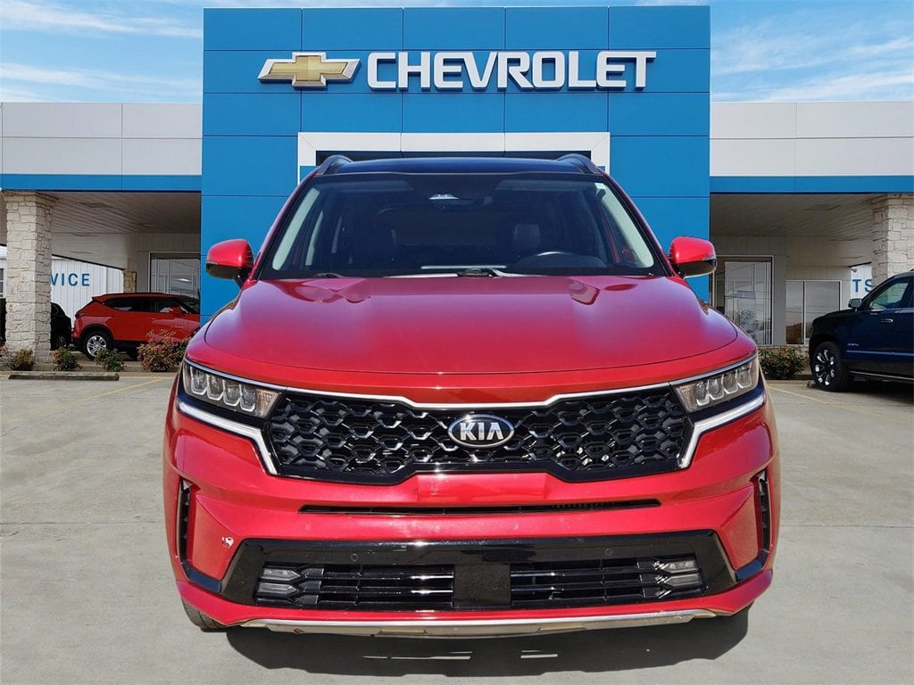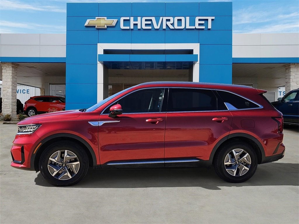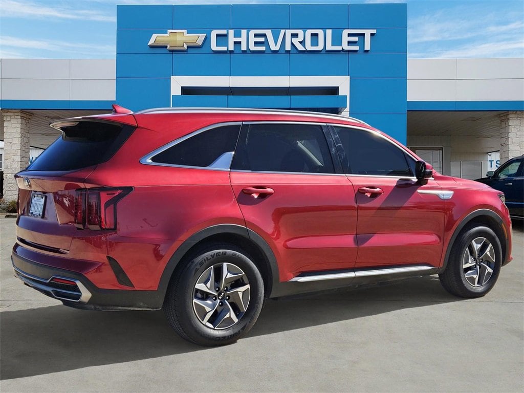 Sorento Hybrid EX, 4D Sport Utility, 1.6L I4 DGI Hybrid Turbocharged DOHC 16V LEV3-ULEV70, 6-Speed Automatic, FWD, Runway Red, Black Artificial Leather, 3rd row seats: split-bench, 4-Wheel Disc Brakes, 6 Speakers, ABS brakes, Air Conditioning, Alloy wheels, AM/FM radio: SiriusXM, Apple CarPlay & Android Auto, Auto High-beam Headlights, Auto-Dimming Mirror w/HomeLink, Automatic temperature control, Axle Ratio: 3.510, Brake assist, Bumpers: body-color, Carpeted Cargo Mat w/Seatback Protection, Carpeted Floor Mats, Delay-off headlights, Driver door bin, Driver vanity mirror, Dual front impact airbags, Dual front side impact airbags, Electronic Stability Control, Exterior Parking Camera Rear, Four wheel independent suspension, Front anti-roll bar, Front Bucket Seats, Front Center Armrest, Front dual zone A/C, Front fog lights, Front reading lights, Fully automatic headlights, Heated door mirrors, Heated Front Bucket Seats, Heated front seats, Illuminated entry, Knee airbag, Leather steering wheel, Low tire pressure warning, Occupant sensing airbag, Outside temperature display, Overhead airbag, Overhead console, Panic alarm, Passenger door bin, Passenger vanity mirror, Power door mirrors, Power driver seat, Power Liftgate, Power moonroof, Power steering, Power windows, Premium Leatherette Seat Trim, Radio data system, Radio: AM/FM Audio System, Rear air conditioning, Rear anti-roll bar, Rear reading lights, Rear window defroster, Rear window wiper, Remote keyless entry, Roof rack: rails only, Security system, Speed control, Speed-sensing steering, Split folding rear seat, Spoiler, Steering wheel mounted audio controls, Tachometer, Telescoping steering wheel, Tilt steering wheel, Traction control, Trip computer, Turn signal indicator mirrors, Variably intermittent wipers, and Wheels: 17 Machine-Finished Aero Style Alloy.