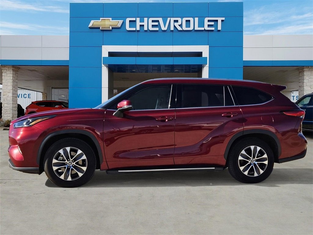 Highlander XLE, 4D Sport Utility, 3.5L V6 DOHC, 8-Speed Automatic, FWD, Red, 3.003 Axle Ratio, 3rd row seats: split-bench, 4-Wheel Disc Brakes, 6 Speakers, ABS brakes, Air Conditioning, Alloy wheels, AM/FM radio: SiriusXM, Apple CarPlay/Android Auto, Auto High-beam Headlights, Auto-dimming Rear-View mirror, Automatic temperature control, Brake assist, Bumpers: body-color, Delay-off headlights, Driver door bin, Driver vanity mirror, Dual front impact airbags, Dual front side impact airbags, Electronic Stability Control, Emergency communication system: Safety Connect with 1-year trial, Exterior Parking Camera Rear, Four wheel independent suspension, Front anti-roll bar, Front Bucket Seats, Front Center Armrest, Front dual zone A/C, Front fog lights, Front reading lights, Fully automatic headlights, Garage door transmitter: HomeLink, Heated door mirrors, Heated Front Bucket Seats, Heated front seats, Illuminated entry, Knee airbag, Leather Shift Knob, Low tire pressure warning, Occupant sensing airbag, Outside temperature display, Overhead airbag, Overhead console, Panic alarm, Passenger door bin, Passenger vanity mirror, Power door mirrors, Power driver seat, Power Liftgate, Power moonroof, Power passenger seat, Power steering, Power windows, Radio: Audio Plus, Rear air conditioning, Rear anti-roll bar, Rear reading lights, Rear window defroster, Rear window wiper, Reclining 3rd row seat, Remote keyless entry, Roof rack: rails only, Security system, SofTex Seat Trim, Speed control, Speed-sensing steering, Split folding rear seat, Spoiler, Steering wheel mounted audio controls, Tachometer, Telescoping steering wheel, Tilt steering wheel, Traction control, Trip computer, Turn signal indicator mirrors, Variably intermittent wipers, and Wheels: 18 Machined-Finish Alloy.
